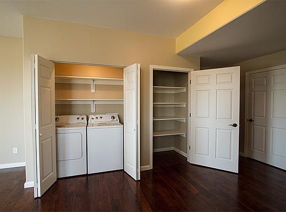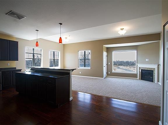 This is a 3-bedroom, 2-bath apartment home located on the *1st floor overlooking the Tongue River, with 1,400 square feet of living space and 350 square feet of balcony space. The kitchen appliances are stainless steel, and the cabinets are wood with an ebony black finish. Included appliances are: dishwasher, range, over-the-counter microwave, garbage disposer, refrigerator, washer and dryer. The kitchen also includes a granite-top island. One of the two bathrooms has a walk-in, tiled shower. This unit also has a fireplace in the corner of the living room. The ceilings are 8 & 9 high. The flooring is: hardwood and carpet throughout, bathroom floors are tiled.
