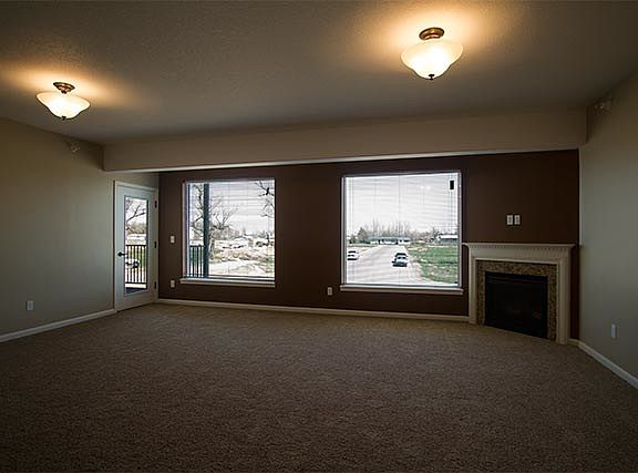 This is a 2-bedroom, 2-bath apartment home located on the *1st floor overlooking the Tongue River, with 1,100 square feet of living space and 200 square feet of balcony space. The kitchen appliances are stainless steel, and the cabinets are wood with an ebony black finish. Included appliances are: dishwasher, range, over-the-counter microwave, garbage disposer, refrigerator, washer and dryer. The kitchen also includes a granite-top island. One of the two bathrooms has a walk-in, tiled shower. This unit also has a fireplace in the corner of the living room. The ceilings are 8? & 9? high. The flooring is: hardwood and carpet throughout, bathroom floors are tiled. Upgraded with: Walk-in Tiled Showers, Gas Fireplaces, Stainless Steel Appliances, Granite-Topped Kitchen Island and Wood Floors.