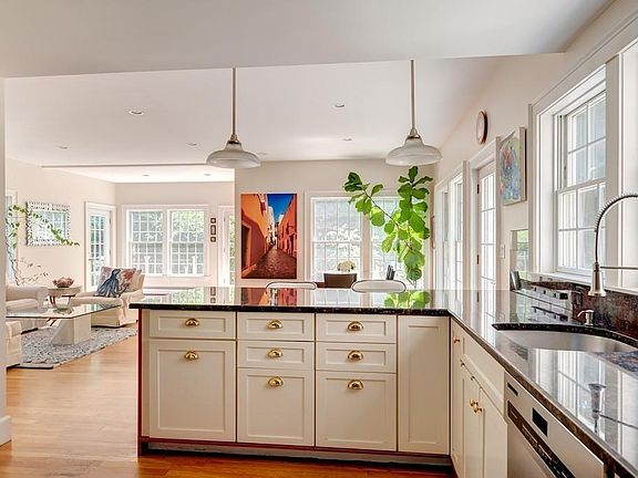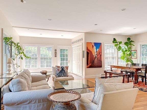 Charm and character prevail in this fabulous Colonial. Hardwood floors and an abundance of windows provide natural light in the open design. The adjoining dining room and family room is ideal for entertaining. The kitchen has a separate dining area and is updated with granite counter tops and stainless steel appliances. A front to back living room with a wood burning fireplace leads to a sunroom that offers privacy and views of the beautiful yard. The master suite with a walk in closet completes the second floor. Perfect for summer night gatherings is a large deck, patio and beautiful pergola on the magnificent grounds. A two car garage includes a separate entrance with an additional room designed for an art studio or workshop. Conveniently located near major commuter routes to Boston and Cambridge.