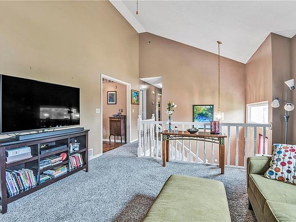 MOVE IN READY SPLIT ENTRY! BIG family room with vaulted ceilings and cozy fireplace. Kitchen includes pantry and backsplash, open to dining room with ceiling inserts. Master bedroom with ceiling inserts and private master bathroom. Finished lower level with second family room and 1/2 bathroom. Private fenced yard, treed and private. Patio with fire pit, great area for entertaining!!