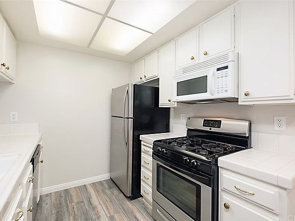Welcome to the gated community of Villa St. Croix. A charming lower level end unit with an open and generous floor plan. The condo has been freshly painted and has beautiful new flooring. Lots of windows fill the condo with natural light. The sliding doors off the living room and bedroom lead to a large and comfortable patio. A fireplace in the living room provides extra warmth on those chilly nights. There is a spacious walk-in closet in the bedroom, plus inside stackable laundry, complete this lovely home. Homeowners enjoy the Association Pool, and Spa, and Clubhouse. In addition, for your convenience, there is an outdoor shower in the pool area. Homeowners have one carport and one open space. A third vehicle is allowed in an open space at an additional monthly charge. Also, there is guest parking. Villa St. Croix is beautifully landscaped and well maintained by the Association. Enjoy all the benefits of living close to Downtown and Pacific City for your shopping, dining, and entertainment enjoyment.