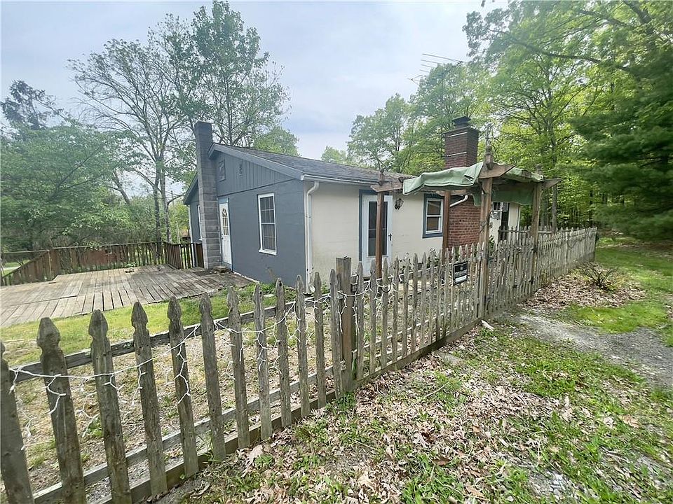 Diamond in the ruff, This ranch home has three bedrooms, one full bath, an eat-in kitchen, and a living room with a fireplace. Full basement Great outdoor space with fenced yard Outside, there is a rear deck, 2 car detached garage, as outbuildings which seem to be set up for chickens . The place will need quite a bit of updating and repair work, so any purchase will need to be cash or a rehab loan. Owner started pulling up existing flooring and completed some renovations. The home has a new roof. This home is surrounded by natures tranquility