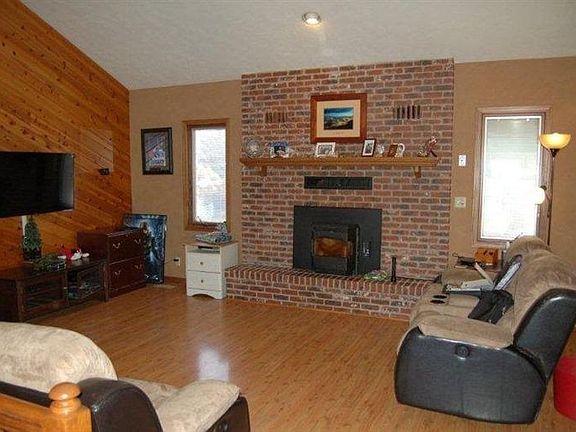 This home has everything but you! Home features large kitchen, dining and living area with vaulted ceilings and a pellet stove, sun room leading to a pool, three bedrooms, 2 1/2 bathrooms all on the main level. Basement offers 2 more bedrooms, 1 full bathroom and huge family room with a wet bar.