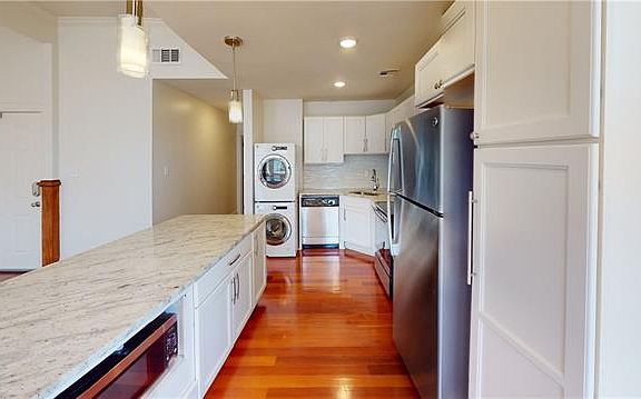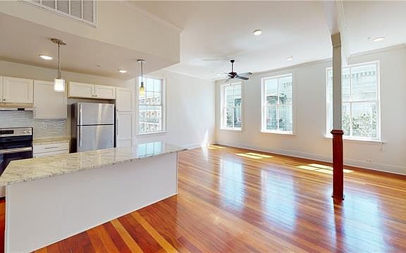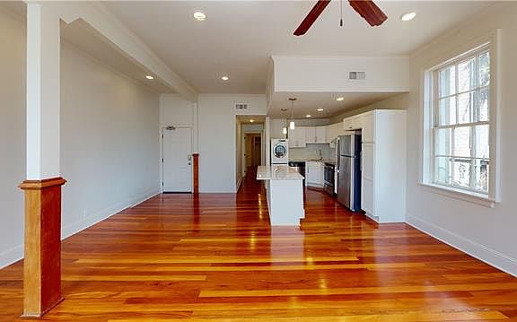 Best of the old and the new! This recently renovated third floor unit features wood floors; central AC & heat; large closets; spacious bedroom; washer/dryer in-unit; SS appliances & granite countertops; abundant natural light AND a balcony overlooking the buzz of the French Quarter! Water & trash utilities included in rent.