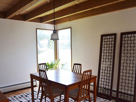 Modern home in Fall Creek! Almost impossible to find.. this is your lucky day! Walk to Farmer's Market and downtown. This custom built home has flexible living space. Could be a 2 bedroom home with a 2 bedroom apartment, or use it all as a 4 bedrooms plus 3 full bath home. Cathedral ceilings, skylights, wood accent ceilings, a mid century flair, corner windows, large balcony off of master bedroom, storage room and attached garage! A definite must see. If you've been wanting to live downtown; but prefer more modern living--- this is it!