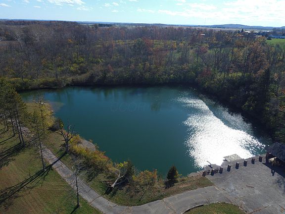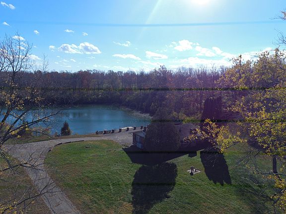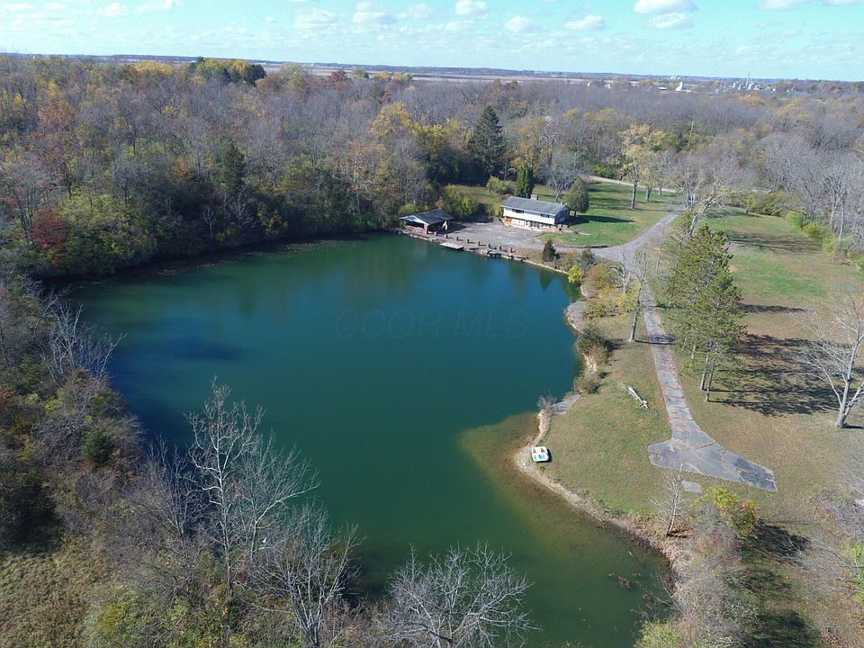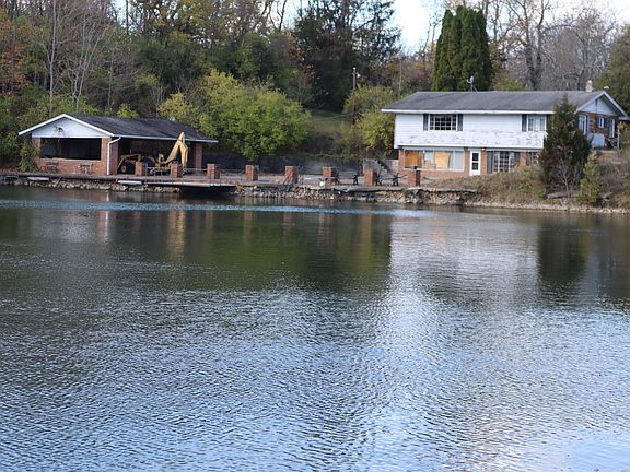 The DREAM recreational property! 7.24 acres nestled in wooded area adjacent to Paint Creek with a private 1.75+/- pond/lake---a former gravel quarry with 60'+/- depths for diving in and swimming, a shallow portion for wading, or use the entire water for fishing, boating and just plain old FUN! Solid brick house with full walk-out basement--home may be a little dated cosmetically but has beautiful fireplaces, large rooms and stunning view. Carport/shelter house great for entertaining. Tons of uses here to live full time, have a great weekend escape or great income potential as VRBO or AirBnB. Truly a wonderful, unique offering!