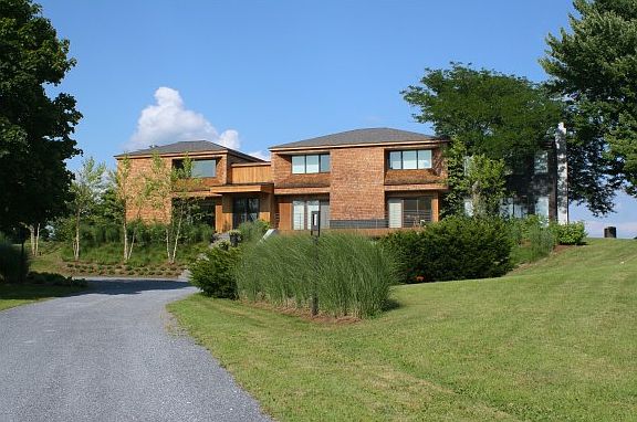 This one-of-a-kind, modern home sits high on 10 acres with sweeping views of the Adirondacks and the Green Mountains; a setting nothing short of magical. Originally designed by Marcel Beaudin and expertly reimagined with attention given to every modern amenity. Expanses of glass and superb design allow for a seamless transition between indoor and outdoor living spaces. Entertain brilliantly in over 4600 flexible SF with in-ground gunite hot tub, two wood-burning fireplaces, interior and exterior surround sound and every inch, new. Two master suites with luxury baths, a state-of-the-art kitchen, and formal and sunken living room joined by a radiant bluestone foyer - a marriage of form and function. A serene landscape of natural gardens, fruit trees, berries and Wagner Hodgson design compliment the modern yet organic exterior. Convenient to everything. A unique and exclusive location; a singular home.