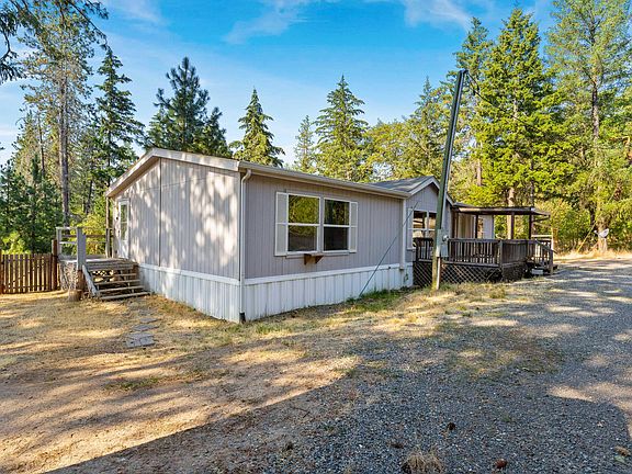 Sweat equity opportunity! This 3 bed, 2 bath manufactured home, built in 2008, is located within the Dreamhill Drive neighborhood on 5 level to gently sloping acres. This home features a split floor plan with an open floor plan for the living area/dining/kitchen. The acreage is mostly wooded with some area cleared just around the home. Some of the property is fenced on the perimeter. Seasonal creek runs through property. Other building amenities include a carport garage, large barn, and shed. The home needs some new flooring, baseboards, paint, and some other cosmetic work. Just 20 minutes to Grants Pass and 30 minutes to Jacksonville! Original well log shows 15GPM when the well was drilled. Cash, conventional loan, or owner carry for qualified buyers.