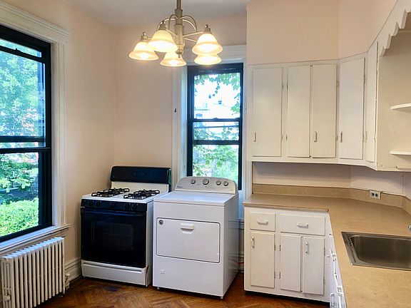 KENSINGTON, BROOKLYN -3 15 E. 5TH STREET - NO FEE - By OWNER. THIS APARTMENT IS RENTED (AS OF 8/29/2024.) One Bedroom + 60 Sq' Office on 2nd Floor- thru in a Private, Two-Family Limestone, Flooded with Natural Light. Own Private Separate Entrance and Foyer. Captivating Architectural Detail Boasts High Ceilings; Parquet Wood Floors; 6 Bay Windows. Large Living Room and Large Master Bedroom each have 3 Bay Windows and a Large Closet. Sunny, Eat-In-Kitchen has Washer & Dryer, lots of Cabinets; Lg Refrigerator; Lg Gas Stove + Gas included. Large Full Bathroom has Shower & Tub. Front View: Tree-Lined Street/Back View: Garden. Conveniently Located Near Shops, Restaurants, & Great Transportation. Only One Block from Ocean Parkway, and Close to Beautiful Prospect Park! Available 9/1/2024. VIEWINGS: M-F 1:00pm - 7:00pm. Weekends: 11:00am -4:00pm. Other times upon request.