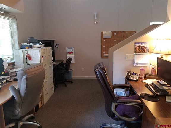 Commercially-zoned unit: nice office downstairs that features a foyer with a ~25-foot ceiling. The office has a full kitchen, a half-bath and an amazing storage closet with a stackable washer/dryer hook-up. There is an extremely spacious balcony. Upstairs is a large, enclosed loft bedroom with fabulous double windows: a set of windows in the bedroom that line up with high windows in the foyer. There are mountain views from the other two bedroom windows and lots of light. Central a/c and a gas water heater. Great location; wonderful, quiet neighborhood. Excellent parking space for the unit and there are often other available spaces in the carport/garage during the business day. PLEASE DO NOTE: this is a commercially-zoned unit and the bedroom is not intended to be a residential space. It's more of a place-to-spend-the-night-when-there-is-too-much-snow-to- drive-home (or to take a nap during your business day :-}).