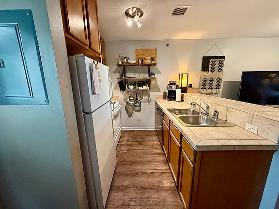 Great location! 2 bedroom, 1.5 bath condo. 2 level floor plan with 2 bedrooms and 1 full bath upstairs with large closets and new washer/dryer all upstairs. First level open floor-plan, kitchen, living, dining and 1/2 bath for guest usage. Walking distance to historic downtown, breweries, restaurants and local organic foods store. Great trolley access, and close to Horse Gulch. One assigned common covered garage parking space. Dishwasher, washer and dryer in the unit. Water and trash removal included in the monthly rent. Tenant is responsible for cable/internet/gas/electric. Outdoor storage closet off the small first floor balcony for bikes or recreational equipment. One year lease, available October 2, 2025. Deposit $1985, proof of renters and liability insurance required. One quiet small dog allowed. Pet deposit -$250.