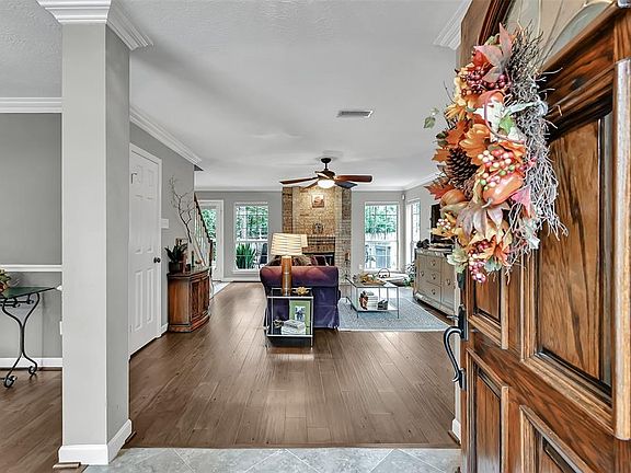 This lovely bright four bedroom, two and a half bath home has granite counters, fireplace, large yard with wooden deck. Laundry Room is conveniently located just off the kitchen. The formal dining room has plenty of space for family and friends. The bedrooms are large with extra closet space. Refrigerator, Washer & Dryer remain with the home. New HVAC in 2018. New Garage Door. Roof is less than six years old. Located on a quiet street in the Heart of The Woodlands. Room Measurements are approximate.