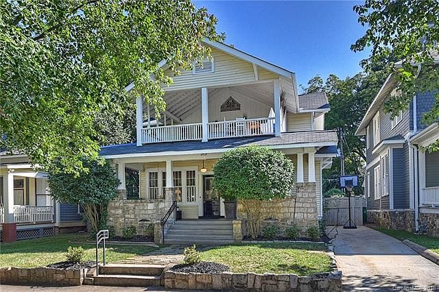 Stunning turn of the century home with views of Uptown Charlotte skyline. Prime location in the heart of Dilworth within blocks of the light rail, Southend restaurants & entertainment, East Blvd, & Latta Park. This 4 bed/2.5 bath home features a phenomenal upstairs covered porch, ideal for outdoor living, sleeping & enjoying family & friends. Must be seen to believe! Classic, large front porch greets you. Home has 10ft ceilings, rich historic architectural detail including original hardwood floors, built-in bookcases, window seats & pocket doors along with modern updates. Entire house is flooded w/ natural light. Versatile floor plan allows for your own lifestyle to dictate the options. Sleek kitchen w/ granite & island w/ prep sink, master on the main w/ fireplace, his & her closets & a spa bath. 2nd level includes 2ndary beds/huge bonus rm or 4th bedrm that accesses the divine covered porch. Large fenced, flat backyard w/ wisteria covered arbor & patio. Private driveway.