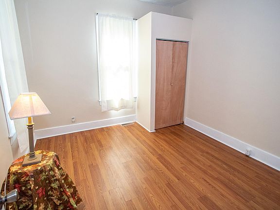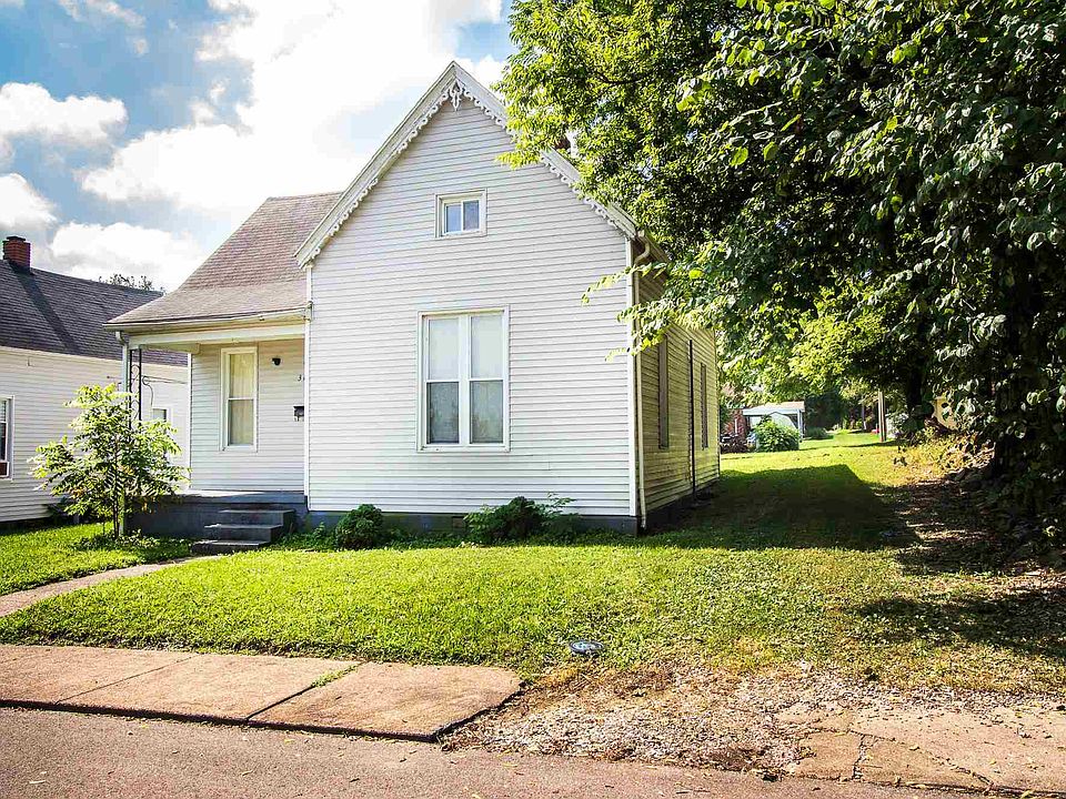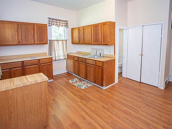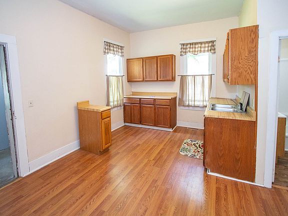 WITH A LITTLE TLC, you can make this house your home! Also could be a good investment opportunity for rental or to flip. Laminate flooring in living room, kitchen, full bath, bedroom one and master bedroom. Separate laundry room on main floor, upstairs has baseboard heat. Replacement windows throughout, steele entry doors front and back, and masonite interior doors. Nice storage barn on property. Off-street parking is available at the rear of home off alley.