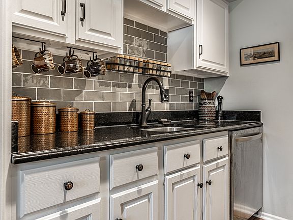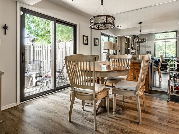 Shazam! You've hit the mother lode: So many updates, such good taste. And the location: near the heart of downtown; walkable with an attached garage. Greenspace. A real paver patio-fenced, a side yard, green space in front. Floor-to-ceiling brick fireplace with gas logs flanked by new bookcases w/ crown molding. ALL NEW Pella windows & doors, luxury vinyl plank t/o, light fixtures, granite counters, custom backsplash, hardware, custom blinds. Exposed brick wall in primary; balcony for fresh air and view of downtown. Reconfigured primary bath for privacy yet accessible for o'nite guests. New Jacuzzi soaking tub with floor-to-ceiling shower enclosure 2022. Walk-in closet. Murphy bed in loft can stay. Storage added in garage. Furnace, a/c 2021, water softener 2024,disposal 2024. Fireplace converted from wood to gas, remote controlled. Fresh paint - no gray! The second bedroom is actually a loft. It is the size of 2d bedrm but is open and flex space.