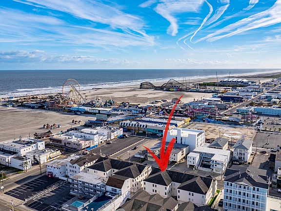 Experience the best of Wildwood living in this beautifully maintained ocean view top-floor condominium, just steps to the world-famous beaches and boardwalk. This spacious 3-bedroom, 2-full bath home offers a bright and inviting open floor plan highlighted by hardwood floors throughout the main living areas, a large living room filled with natural light, a dining area, and a fully equipped kitchen with center island and abundant cabinet space. From the private deck, watch the fireworks and enjoy stunning views of the beach, ocean, and iconic Ferris wheel— the perfect spot to relax and soak in the shore atmosphere. Centrally located, walk to the farmers market, concerts, restaurants, water parks, and rides. The primary suite includes an en-suite bath, while two additional bedrooms, a full bath and a full laundry room provide excellent space and convenience for family and guests. Additional highlights include central air, two assigned parking spots in a private garage, private storage, and meticulously cared for and clean interior throughout. With reasonable HOA fees, this turn-key condo is ideal as a personal shore retreat or a strong investment opportunity with proven rental potential. Don’t miss out on this rare ocean view property in the center of all that Wildwood has to offer!