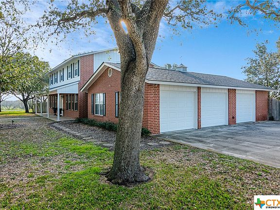 Beautiful and comfortable - YOU WILL FEEL RIGHT-AT-HOME! Secluded in an estate subdivision, yet 5 minutes from retail/dining/medical/historic downtown and a quick drive to I-10 and toll 130. Approx 40 live oaks on 5-acres creates a park-like setting. While enjoying the backyard patio, pool, spa and 40' arbor, you have a postcard view of the surrounding countryside and wildlife. A stocked (catfish, blue gill) tank/pond comes with an adjoining "casita", 8x11' fishing tackle shed, and a sunset-viewing deck. The home has an inviting family room with fireplace, a sunroom, formal dining ideal for an office, and 3 upstairs bedrooms and a downstairs bonus room that could be a multi-gen suite. See the "Features List" for complete information on the property. Other lot features are a 14x24' shed, automatic sprinkler system, and a 20x40' concrete slab for RV metal storage. Owner selling AS-IS.
