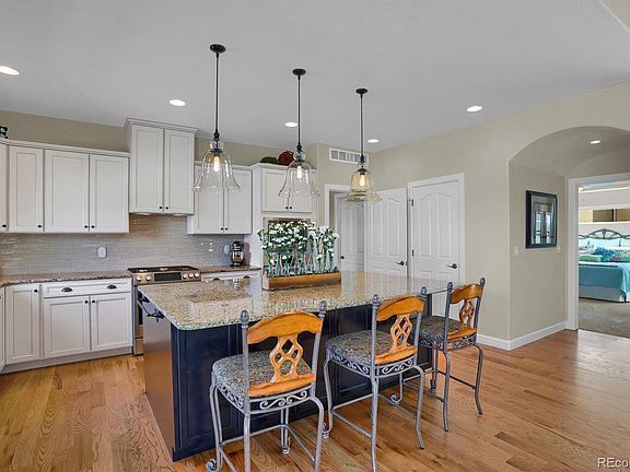 Walk up to the front porch, open the impressive front door, and take a step into your dream home. No detail was spared when this stunning semi-custom home was designed and built. Better than new, this meticulously maintained, and cared for home, will welcome you with it's classic finishes, and modern layout. 4 finished bedrooms, a dream kitchen and recreation space to spare, you'll find everything you need here. The designer kitchen has 2 tone cabinetry, a farm house sink and a luxury island. The kitchen also has a 5 burner Bosch gas stove top with convection oven and warming drawer. Holidays are made easy with the additional wall oven and microwave. The walk in pantry has pressure trigger lighting allowing you to walk in with full arms and never fumble for a light switch. The wide plank red oak floors extend through the great room and dining area. 8 foot tall sliding doors bring in natural light and accentuate the vast ceiling height. In the master bathroom you'll enjoy separate vanities, and a 3 shower head walk in shower, while still keeping a large soaking tub. With access from the great room or the master bedroom this home has the perfect private outdoor patio. Use for an outdoor living room, hot tub, or dining space and you'll be able to enjoy beautiful Colorado with privacy. In the basement you'll discover fantastic entertaining spaces, additional bedrooms, and a storage room, which could be converted to a 5th bedroom if desired. Protect your valuables, and yourself with the cold storage/safe room. This home is located in the amazing community of Gold Hill Mesa. You will have full access to everything the community has to offer when you make the move and call this dream home yours.