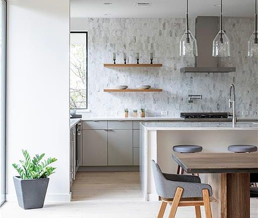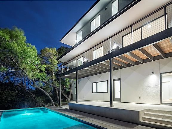 Exquisite New Construction in Lakeway! Main Level features a well appointed chef's kitchen with double ovens (gas & electric), gas range, wine refrigerator, Quartzite waterfall island with seating, quartz counters, and a beautiful marble tile backsplash. Enjoy Two sinks, Fisher & Paykel dishwasher, & spacious walk-in pantry with quartz countertop for discreet appliance storage. Home has Engineered White Oak floors throughout the kitchen and living areas and Western Window System sliding doors out to the balcony. Featuring a retreat-like expansive Master suite with en-suite bath and private terrace, owners can enjoy treetop views and ultimate privacy. Secondary living and entertaining area on lower level with storage or wine room leads out to pool and outdoor living. Oversize windows throughout accentuate the contemporary mid century modern design. Mature trees provide shade & privacy. 3 Car attached garage plus off street guest parking.