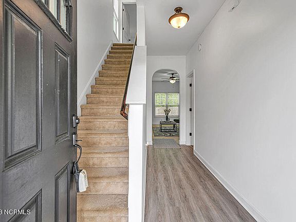 Welcome to this charmer located in peaceful Towne Pointe! Upon entering, you're greeted by a spacious living area that seamlessly connects to the dining area and kitchen, promoting togetherness and functionality with its open floorplan. The kitchen features stainless steel appliances, granite countertops complete with breakfast bar, and ample storage space. Upstairs are 3 comfortably sized bedrooms. The primary includes an en suite bath, complete with a luxurious soaker tub and separate shower. The additional bedrooms share a well appointed bathroom. No lugging a hamper, as laundry is on the second floor, too! The expansive, fenced backyard provides an ideal space for outdoor activities or relaxing in the tranquil surroundings on your covered patio. New blinds throughout; new vinyl in laundry room and downstairs powder room! Conveniently located near multiple base gates and all the amenities of Jacksonville. Don't miss the opportunity to make this house your dream home!