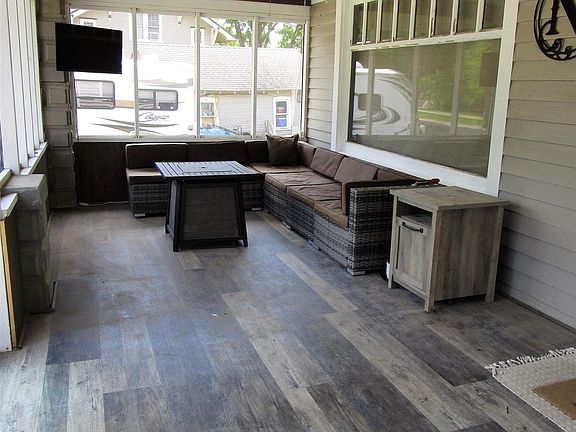 You will love the charm and character that abounds in this home. Enter through a enclosed covered porch. It's the perfect place to sit and have a cup of coffee and admire the Veteran's Memorial across the street, the Peter Tooth stature or the swinging bridge. Once inside the home you will appreciate the original woodwork, a fireplace in the living room, dining room with built in hutch, two bedrooms, kitchen, laundry and bathroom. The kitchen features white soft close cabinets, granite counter tops and stainless steel appliances. Upstairs you will find a half bath, large Primary bedroom and additional area. The lower level is unfinished and provides plenty of storage. On the rear of the house there is a large deck which is nice with a fenced in back yard. There is a lot to love about this property, be sure to check it out.