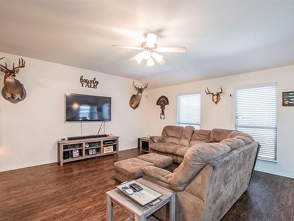 MUST SEE THIS STUNNING HOME WITH RUSTIC APPEAL!! Great for entertaining with an open concept floor plan. Large wrap around kitchen bar overlooks the breakfast nook and living room. You will love how your new home opens to the large fenced back yard with open patio, fire pit and playset. Rich Wood Cabinetry throughout, Beautiful Wood Plank LVT flooring, new carpet in bedrooms August 2018. Private master suite sperate from bedrooms. Large Master Bath with two sinks, soaking tub with separate shower. Solar Screens on all windows. Country living in a quiet neighborhood just 20min from Wylie & 15min from Royse City. Community features a private pond with walking path.