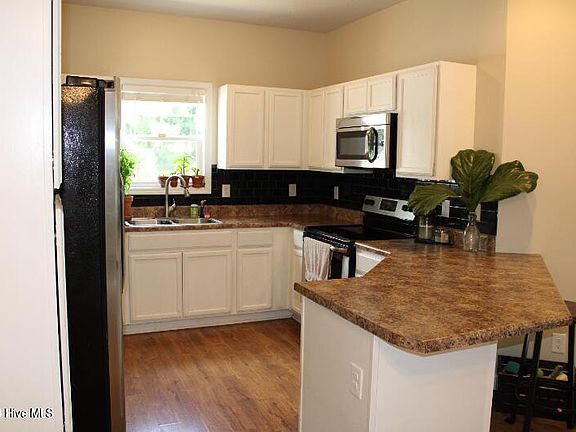 Welcome to this beautiful 3 bedroom, 2.5 bathroom townhome complete with a 1 car garage. This end unit townhome boasts a desirable open floor plan, high ceilings, and alot of natural light! The home features easy care LVP flooring throughout, so there will never be concern about dirty carpets! Downstairs you'll find a spacious kitchen that features lots of cabinetry, stainless steel appliances, counter bar seating & overlooks the living/dining rooms. A half bath is also conveniently located on the first floor. Upstairs are 3 roomy bedrooms, 2 full baths & plenty of closets for storage! The Master suite is highlighted by the trey ceiling & huge walk-in closet! The ensuite bathroom features His/Her vanity, a large walk-in shower, and a garden tub perfect for soaking. The fenced in back yard is the perfect place to entertain family & friends with a covered patio, great place to grill & chill! Parking includes a 1 car garage with two garage door openers for easy access and 3 additional driveway parking spaces, designed specifically for this property. Quick and easy access to HWY 17 makes this home conveniently close to shopping, dining, entertainment, , schools, and Sneads Ferry, Topsail, Surf City beaches.military bases (10 min to Stone Bay, 15 min to Camp Lejeune back gate, 20 min to MCAS New River). Call today for more information.