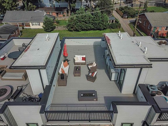 Highly sought out Brownstone in the heart of Germantown. Hardwoods, stainless appliances, quartz counters, gas range, ceramic tile backsplash. Chef's kitchen with custom cabinetry & huge island. Attached 2 car garage. Built- in gas fire table/fire pit on huge rooftop deck- has front facing view of the city skyline. Walk to the Sounds, farmers market & city's best restaurants. High efficiency steam washer & dryer to remain as do $8500 worth of custom window blinds.