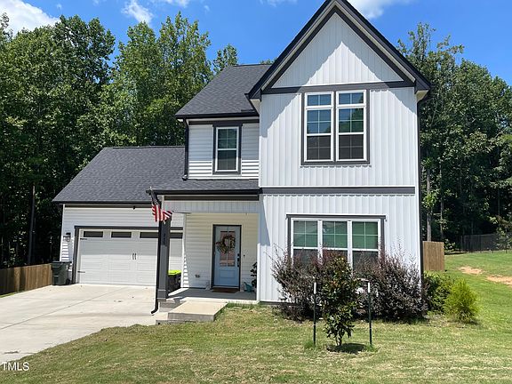 Walkable lifestyle, cafe's, boutiques, and Owl's Roost Brewery nearby. Downtown Franklinton offers, shops, eateries, and live music, all within a welcoming community full of charm and artistic spirit. This beautifully equipped home features a stunning kitchen with painted cabinetry, quartz countertops, stainless steel appliances, and a center island with sink and pendant lighting. Brand-new washer, dryer, and refrigerator all convey! Enjoy a large walk-in pantry with custom wood shelving and a coffee bar complete with quartz counter, floating shelving, shiplap and space for a mini fridge. The family room offers a cozy gas log fireplace with a stylish shiplap surround, built-in shelving, and a mantle. Sliding doors lead to a covered porch and a fully fenced backyard—perfect for pets and play—with a new privacy fence (2024) and a new shed added in 2023. Upstairs, the spacious primary suite features vaulted ceilings, a walk-in closet with wood shelving, and a luxurious spa like bath with a tiled walk-in shower, separate soaking tub, double vanity with quartz tops, and private water closet. Two additional bedrooms share a full bath, and there's a dedicated laundry room plus a large walk-in attic storage area. Whole House Carbon Filtration system (2024), Garage is EV Ready. This move-in-ready gem offers comfort, charm, and functionality—don't miss your chance to make it yours! Only 15 minute drive to Wake Forest.