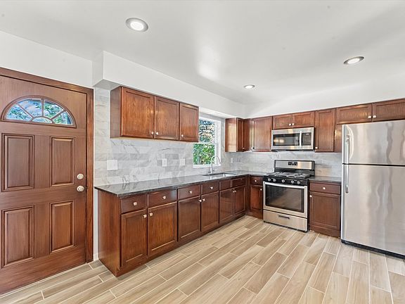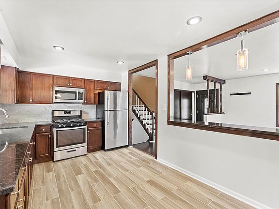 AMAZING home! Very spacious tri-level home with 5 bedrooms 3 bathrooms. The inviting living room greets you with gleaming hardwood floors, a large bay window that fills the space with natural light, and a charming peek-a-boo window that connects to the kitchen. The dining room and kitchen are adorned with lovely ceramic tile flooring and enhanced by recessed lighting, creating a warm and welcoming atmosphere. Kitchen is updated with granite countertops and backsplash and stainless steel appliances. A door from the kitchen opens to a generous deck, perfect for outdoor entertaining. The finished lower level is a walk-out and features a second kitchen, family room and 1/2 bathroom. Sub basement is also finished with a room and office room and shower too, ideal for an in-law arrangement or additional living space. The beautifully landscaped backyard boasts a large deck and patio. It is fully fenced for the children and pet companions. Updated within the last 5 years, new siding, roof, downspouts, and gutters. Take advantage of this house!