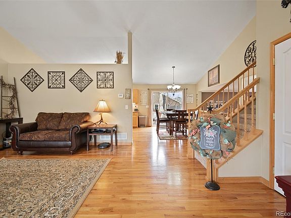 Come see this incredible home in Rocksbury Ridge right next to the Johnstown Reservoir! Beautifully maintained and move in ready. 2 year old roof & exterior paint, hardwood floors on the whole main level, newer stainless steel appliances, & granite on EVERY surface of the home. Not only is there a large living room with vaulted ceiling & lower family room with gas fireplace, but also a finished basement with rec room/media area wired for surround sound, built ins & wet bar perfect for entertaining. 4th bedroom could easily be added. Private master suite upstairs with an upgraded bathroom & walk in closet. You will love summer nights on the huge composite deck & additional stamped concrete patio wired for a hot tub! Close proximity to I-25.