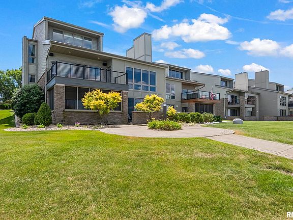 Amazing water front living on Lake Springfield. Panoramic views of the main body from this gorgeous 4 bedroom 5 and a half bath condominium in Harbor Pointe. Main level boasts huge great room with vaulted ceilings, gourmet kitchen with breakfast bar and center island, pullouts in cabinetry, commercial grade refrigerator, warming drawer, hood over range and solid surface countertops. Hardwood flooring stretches throughout the living room with gas log fireplace. Main floor primary suite offers gorgeous lake view through glass slider which opens up to new maintenance free deck. Luxurious primary bath with custom walk in closet, two bowl vanity with makeup area, Jacuzzi tub and huge walk in tiled shower. Perfect for entertaining where as the second level offers two guest bedrooms, two full baths, and spacious loft. Walk out lower level has 2nd en-suite, wet bar in rec area, separate kitchenette, exercise room and an enclosed patio plus a screened porch with a top of the line 6 person hot tub that stays. Attached 2 car garage. Fantastic laundry room with built ins. The association offers heated pool and club house. Also comes with 1 covered boat slip and lift. Rochester Schools.