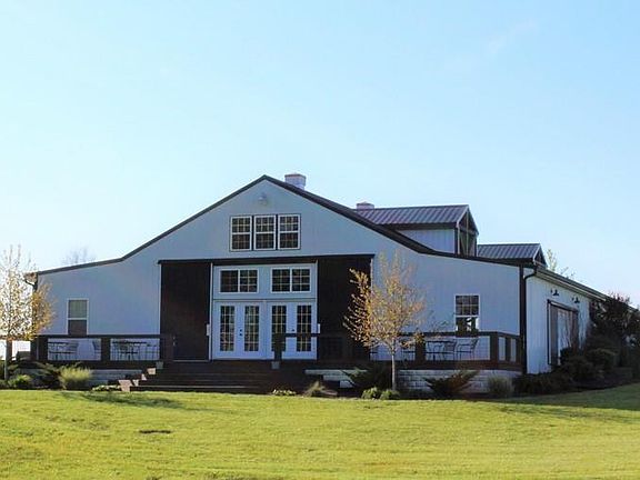 Endless opportunities come with this impeccable one of a kind 4876 +/- square foot home nestled on 46.5+/- rolling acres. The amenities of this 4 bedroom, 4 full bath, 2 half bath palatial french country home surpass description. Each of the second floor bedrooms are en suite, and the bonus space contains a kitchenette. The gourmet kitchen is open to the grand room and breakfast nook, inviting conversation and perfect for entertaining. The master quarters includes a spa-like bath, as well as access to the veranda, outdoor kitchen and cabana bath overlooking a lake with a covered dock. The property includes a 5700 sq ft metal climate controlled structure with 2 half baths currently used as an event venue, carriage house with bath, storage barn and 5 acres of 5 varieties of grapes. Do not let this opportunity get away!