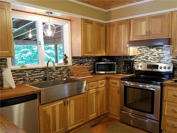Enjoy the amazing transformation - looks like a brand new house inside! Beautiful new kitchen with large double door pantry offers lots of storage space. Stainless appliances enhance the warm wood tones....Eat in kitchen open to family room that boasts several large windows for bright natural light. Formal dining and living rooms add to the roominess of the first floor! Second floor offers 4 spacious bedrooms with remodeled contemporary main bath. Large deck and covered porch in the back of the house for rain free picnics! Private, wooded two acres only minutes to schools and shopping. Definitely not a drive by!!