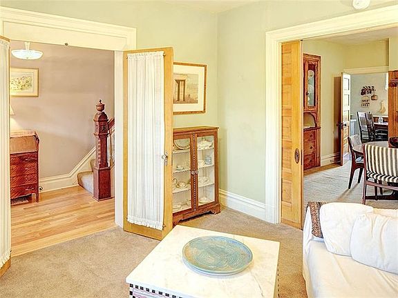 Unique Home. Presently used as a three bedroom with fabulous third floor that has been used as an artist studio-Two large adjoining rooms. A Rinnai on demand hot water heater is in main house which has also 2 furnaces- Installed in 2018.One for downstairs and other for 2nd and third floor. Entry hall has French doors opening into the living room. Enjoy the glorious garden that is between the home and the garage.In the garden are perennial flower beds, and organic raised beds with vegetables, herbs and fruit.The garden is butterfly and bee friendly. The carriage house that was installed by this owner has a 2 car garage and another studio above with a 1/2 bath. 2 Separate heating units are ventless gas heaters. There is also window AC for your year round comfort. This home and carriage house have endless possibilities for many lifestyles.