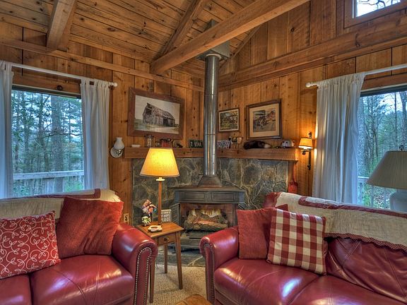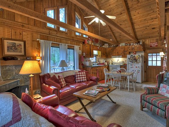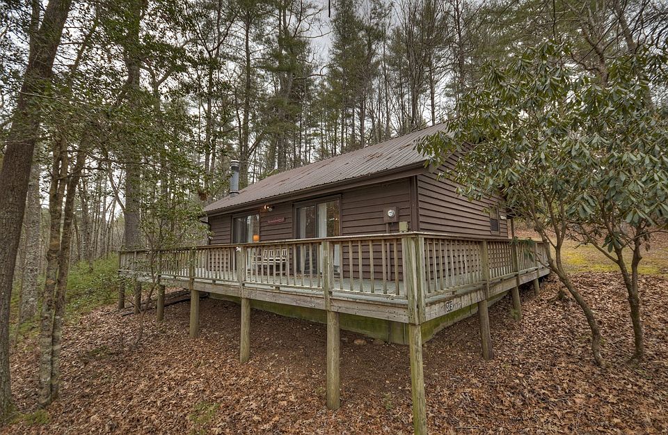 Absolutely adorable cabin in the woods nestled in the hardwoods and mountain laurel. This cabin offers you privacy, year round mountain views and This lot fronts approx. 172 ft of USFS (HUNDREDS of acres of protected land). The exterior offers wrap around decking to enjoy nature and the abundant Wildlife! This homes interior is quaint and inviting with two bedrooms and a bath on the main and a sleeping bunk room upstairs. Only minutes from the "swinging bridge", Toccoa River & Hiking!