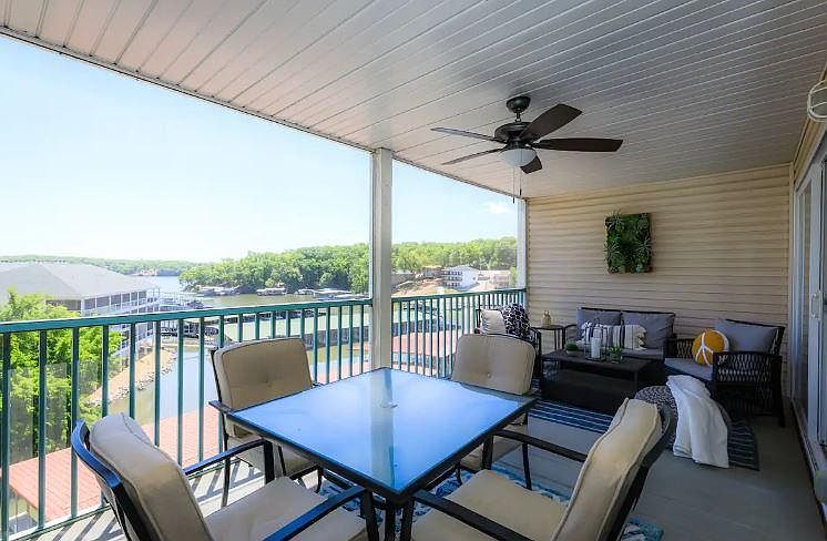 RARE SUMMER RENTAL/1 YEAR LEASE OPPORTUNITY! Newly updated and furnished 2 bedroom, 2 full bath condo on mile marker 14. This Lakeview property has vinyl plank floors, kitchen and bath recently updated in Spring 2022, screened deck, very clean with a generous amount of closet space. New carpet in bedrooms with ceiling fans. The master bedroom has a sliding floor out to the deck where you will feel like you're at a beach oasis in the Midwest. The unit comes fully furnished and move-in ready. Located in a prime location right off of Horseshoe Bend. *This property is not available until May 15th, 2025.* You cannot tour until May 1st 2025 as it is currently occupied. No pets or smoking. Water, trash, and internet provided. The tenant is responsible for electricity. Rental application and credit check with a $50 application fee per adult applicant are required. The condo is available during the rare peak summer months. $1,500 security deposit along with first month's rent due the date of signing the lease. Free internet and owner pays for utilities.