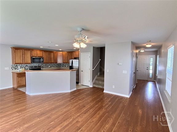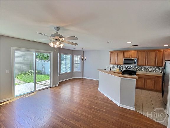 This exceptional 4 bed, 3.5 bath, end unit townhouse is move-in ready. The property has a fenced yard, a two-car garage, and is situated within a gated community at The Farms at Morgan Lakes. Residents can enjoy numerous amenities, multiple swimming pools, a playground, fitness center, and clubhouse. The home includes a guest suite with a full bath on the main floor, a master bedroom with a private balcony, and two additional bedrooms on the second floor. The first floor boasts an open layout with a kitchen, breakfast area, and living room complete with wood and tile flooring. Conveniently located just minutes from the airport and Savannah. One small pet allowed for a $400 nonrefundable pet fee. No smoking permitted.
