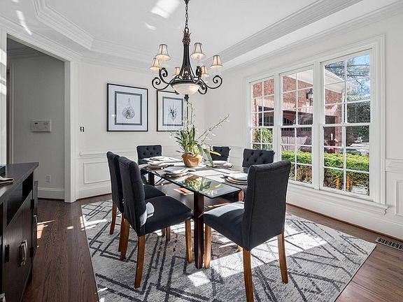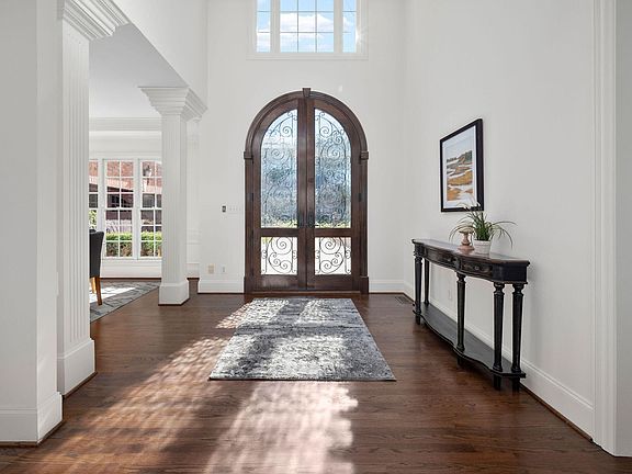 Elegant All-Brick Home Overlooking Prestonwood Golf Course. The striking double eyebrow-arched iron front door features a sophisticated scrolled design. Step into the foyer with formal dining to the right & a bright living room ahead with tall windows highlighting the backyard. 1st-floor primary suite with a large WIC and an en suite bath. REFINISHED hardwood floors, NEW neutral paint, and NEW carpet. The expansive kitchen boasts SS appliances, white cabinets, 6-burner gas cooktop, large island, new backsplash & breakfast nook for casual meals. The family room provides space to unwind with built-ins and a gas fireplace. 2 laundry rooms (one on each floor)! Upstairs, you'll find 4 BRs along with a versatile bonus room. 3rd floor unfinished walkup attic. Outside, the flat, spacious yard is designed for entertaining - large deck with iron railings, brick-accented patio plus slate patio & stone walkways and a charming firepit. Side-load carriage garage door with glass detailing. A classic charmer in a prime location!