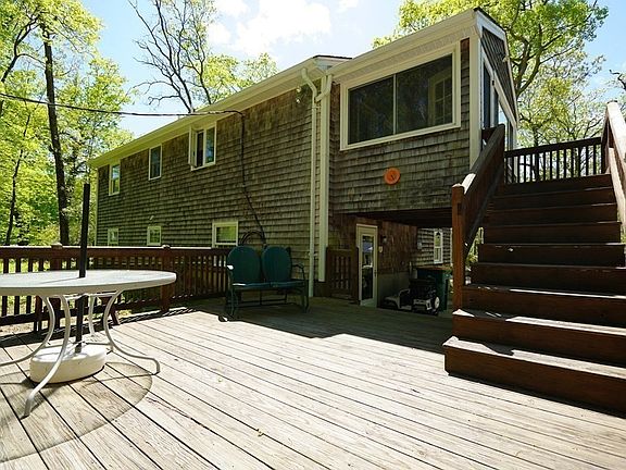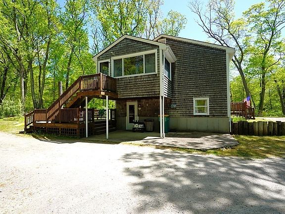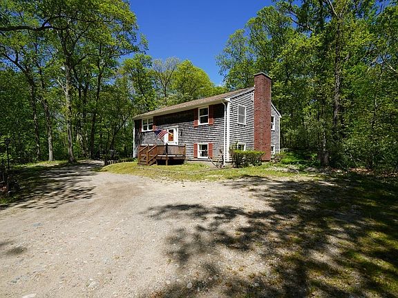 1.54 +/- Acres! Private country setting and only a few minutes from all shopping, main routes and the MBTA train. 14 x 24+/- front to back family room with fireplace and pellet stove. Built in bar and picture frame moldings. 2 full baths. 13 x 14 bedroom down. Two bedrooms on the main level. Nice open floor plan in the living room, dining area and kitchen. Granite countertop on the island in the kitchen. Dining area opens to an enclosed porch. Summer evenings are enjoyed on the porch as well as the private deck. Bonus! Detached building with wood stove ready for the next get together. Separate shed for workshop and storage. All nicely set back from the street! Come take a look! Showings start Monday, June 20th by appointment.