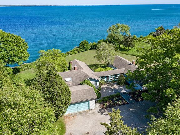 Heading down the long tree lined drive off secluded Indian Avenue, you'll be coming home to "Daisyfield" a 3,000+ sq ft mid-century single level home framed by the ocean, sited on 2.76 private acres. Enter through the window-lined thirty-foot hallway with its panoramic water view. Turning to your left, you will enter the welcoming living area which features a cathedral ceiling-ed great room where many happy guests have relaxed with a wood burning fireplace and a wall of windows looking out to the Atlantic. Flowing from there enter the hall on the way to the striking dining room with water views, and on from there to the quiet family room, convenient bathroom, slate patio where you and friends can enjoy ocean breezes, and an eat in kitchen, rounding out the hospitality, hallmark of this well-loved home. The sleeping wing has 4 large bedrooms, built-in desks, ideal for working from home, 2 full baths and separate entrances. Heading down the lawn take the stairs to the distinctive puddingstone rock, the site of many rustic picnics where you can enter the water, watch the moon rise or get lost in the sound of waves breaking on the shore. Additional features include a two-car garage, hardwood floors, and zoned central air-conditioning. This property has been a family gathering place for many years and could be the same for you. Close to St. George's School and Third Beach, enjoy waterfront serenity minutes from Newport.