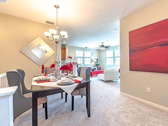 Gorgeous townhouse style Condo with newly remodeled bathrooms. Perfect location, End unit with an abundance of natural lights. An open floor plan welcomes you into the spacious dining area and expansive living space. 2 attached car garage. Nice patio accessible from the kitchen with a beautiful view - perfect for relaxing & BBQ. Updated bathrooms features: New bathtub, new shower, new bath glass door, new faucets, new light fixtures, new toilets, new vanity, and new tiles. Built-in surround sound speakers. Gas Fireplace & Ceiling fan in the living room. Ready to move in with brand new carpet and interior paint throughout the house. Steps away from Alamo Creek Trail, and walking distance to Parks and excellent San Ramon schools. Soon, it will be minutes away from future San Ramon downtown.