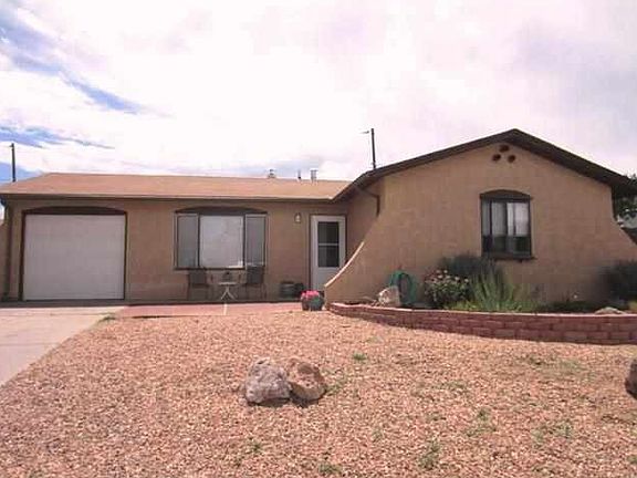 ** New roof scheduled to be installed by David Espinoza in the Fall of 2013 ** This 3 bedroom, 1 bath home is a wonderful opportunity at a very affordable price and much more than you expect in 1241 SqFt. One of the nicest features is the family room addition with woodstove, ceramic tile, very large upgraded windows and vaulted ceilings providing many living options. The light and bright kitchen has some updates as well including newer counters, a newer stove and built-in microwave, plus newer laminate flooring. There is also newer laminate flooring in the open and bright living room, ceiling fans throughout, updated double pane windows, updated furnace/H2O heater and newer furnace ducting via the attic. The three bedrooms are all serviced by a full bathroom. Sliding glass doors exit from the living room to a nice patio in the privacy fenced backyard that would be ideal for a play area, garden, greenhouse or workshop and has fruit trees and a small shed for tools and gear storage. The front yard features low-maintenance xeriscaping and there is a large one-car attached garage along with a large parking pad for an RV, trailer or extra vehicle at the front of the home. Located within easy walking distance to Chamisa Elementary School and near Overlook Park in White Rock, you really should go take a look--you will be happy you did!