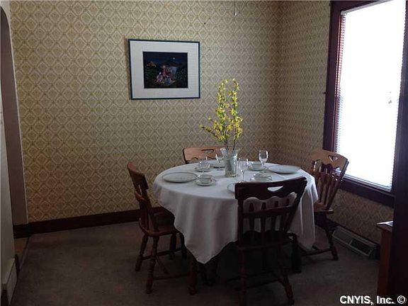 This attractive, well cared for 3 bdrm., 1 bath home sits on a quiet neighborhood street in desirable area of Mattydale. The first floor has a bright and airy living room, dining room, and large eat-in kitchen which opens to an enclosed porch overlooking fenced yard. First floor bedroom and full bath. The second story offers 2 additional bedrooms. Clean and dry basement has been freshly painted. Hardwoods under carpet (except downstairs BR). This home has much to offer and is priced to SELL!