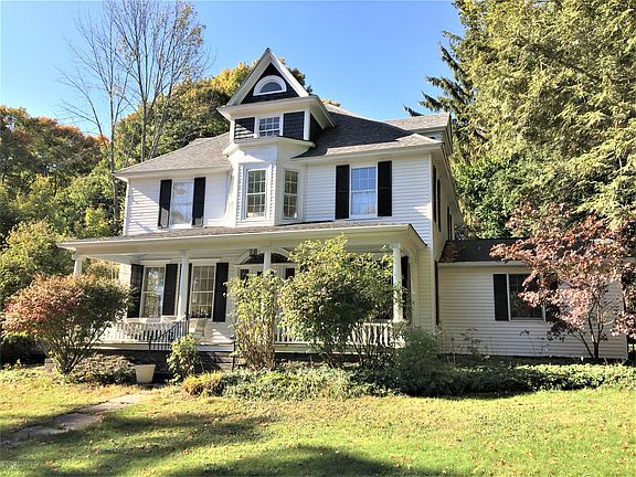 'Home of Distinction' Stately Center Hall 3bd/3b Home blt around 1895. Great location,lovely backyard and two blocks from downtown.Quality workmanship inside and out. Brand new roof,beautiful hardwood & pine floors,cherry cabinets,tiled bathrooms,high ceilings,gas & wood fireplaces,some replacement windows,staircase to full attic with blown-in insulation.Exposed wood beams & pine floors in dining area which opens to the kitchen.Gas insert in firplace creates a cozy,relaxing atmosphere. Large enclosed screend in back flagstone patio with access to backyard and living room through French doors.Great traffic flow,spacious rooms with plenty of storage. In home office areas with cable connections.Native stone walls boarder backyard. Fenced in area for your pets or small children. Peaceful neighborhood.No OGM rights convey with property.