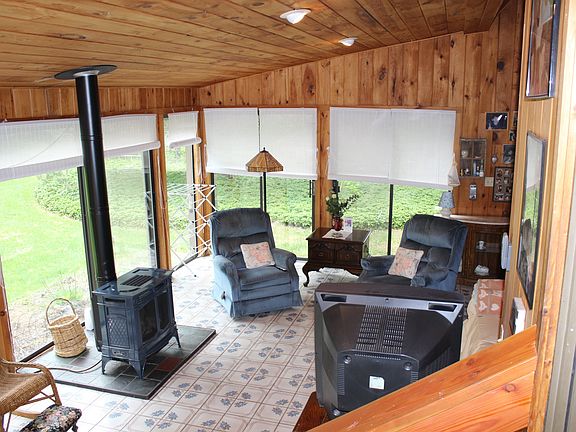 Nice open land in front and back. House sets on 4.67 acres of usable land. Paved Driveway, Open field. Country Home offers expansive living area. Living room with wood floors and fireplace. Great room with tile floor and banks of windows over looking back yard. Eat-in kitchen with nice view. First floor master suite. Two other bedrooms plus Loft. Central Vacuum. First floor laundry. Large Deck off great room. Attached two car garages. Storage shield. Gardens. This property offer a lot of potential.