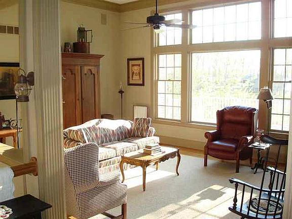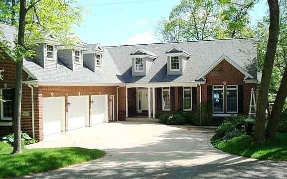 This custom home offers spacious comfort with superb craftsmanship and so many upgrades. It is lakefront in the upscale wooded neighborhood of Timber Bay. The Timber Bay common area has a sandy beach, manicured lawn for picnics and games, and a firepit and lakeside pavilion. The sellers are the original owners and every detail was thoughtfully planned. Hickory hardwood flooring is featured in the kitchen, hearth room, dining room, living room, entry and hallways. There is a two sided fireplace between the living room and hearth room that is open to the kitchen. The kitchen cabinets are custom Hickory by Dutchmade. A three season room is located off the hearth room and adjoins a deck across the entire front of the home. A game room with a second kitchen and oversized pantry is located on the lower level in addition to a soundproofed media room and another two sided fireplace. The 38x14 storage room plus a wine room with a sink and an extra entrance from the garage to the lower level are