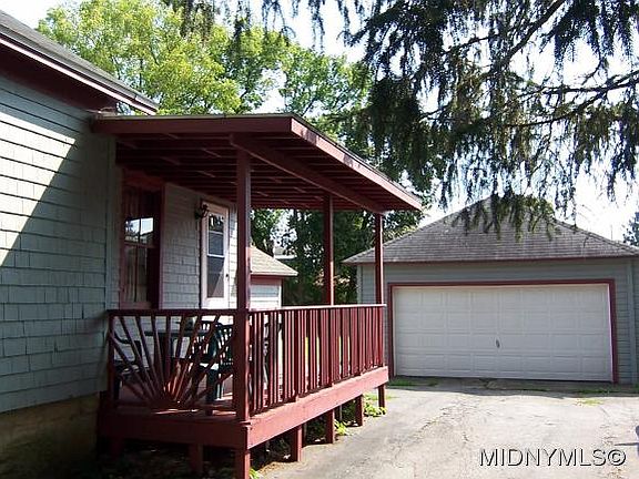 Oneida home offers 5 year old roof! Freshly painted exterior! 2 car detached garage plus storage! Living room, formal dining, eat-in kitchen with wood cabinets and appliances, 1 bedroom down and 2 bedrooms up! Full bath. Front and side porches! A honey for the money!