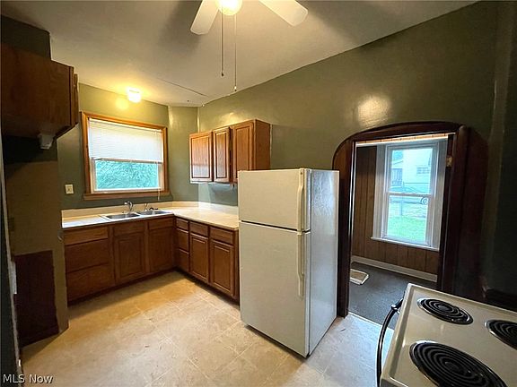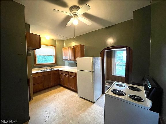 Move in Ready two-story home with 1,404 sf of living space located on a corner lot. This home features two bedrooms, a dining room and first floor laundry room. The first floor still has the beautiful original woodwork. Newer carpet throughout the home. The kitchen has oak cabinetry and the refrigerator and range stay. Updated bathroom. 100 amp service. Basement has glass block windows and sump pump. Two car, detached garage with opener. Back yard is fenced in.  Relax on the covered front porch. No sign in yard.