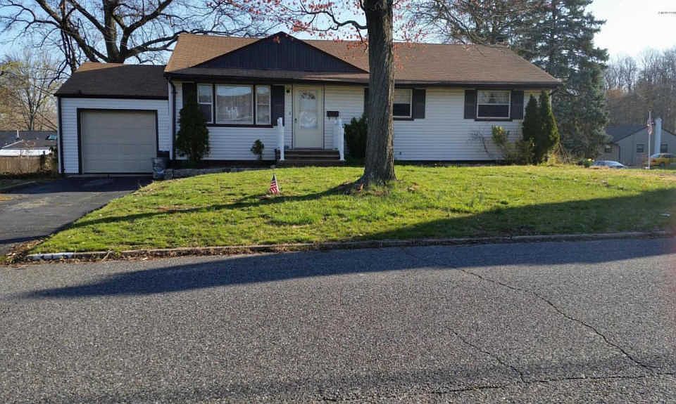 This corner expanded 3 bedroom ranch has lots of potential with an eat in kitchen and a sun room addition. Hardwood under carpet, attached garage, vaulted ceilings. Newer roof. Newer windows in sun room. Many possibilities await! Needs TLC! Conveniently located close to NYC transportation bus, ferry & train!